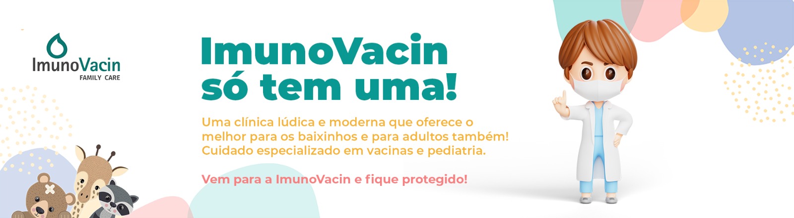 A ImunoVacin Family Care é uma clínica multiprofissional de cuidados pediátricos, com um portfólio amplo de serviços que abrange desde vacinas e consultas médicas, até terapias multiprofissionais, e muito mais, e para tanto, conta com uma estrutura física ampla, moderna, e super lúdica, diferente de tudo que você já viu, pois acreditamos que as crianças merecem o melhor, sempre! Na nossa equipe temos os melhores profissionais da área, sempre atualizados e dedicados. Contamos com médicos, enfermeiros, psicóloga, fonoaudióloga, nutricionista… E sempre estaremos crescendo e desenvolvendo mais e mais.